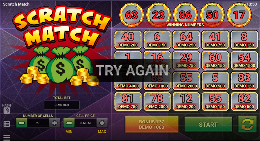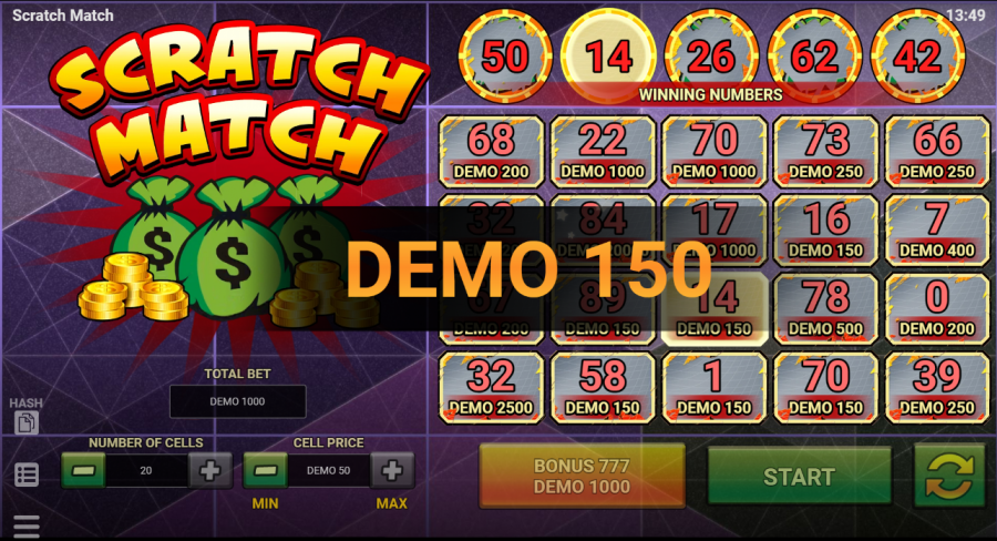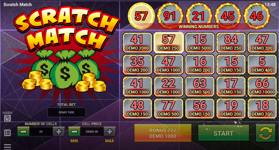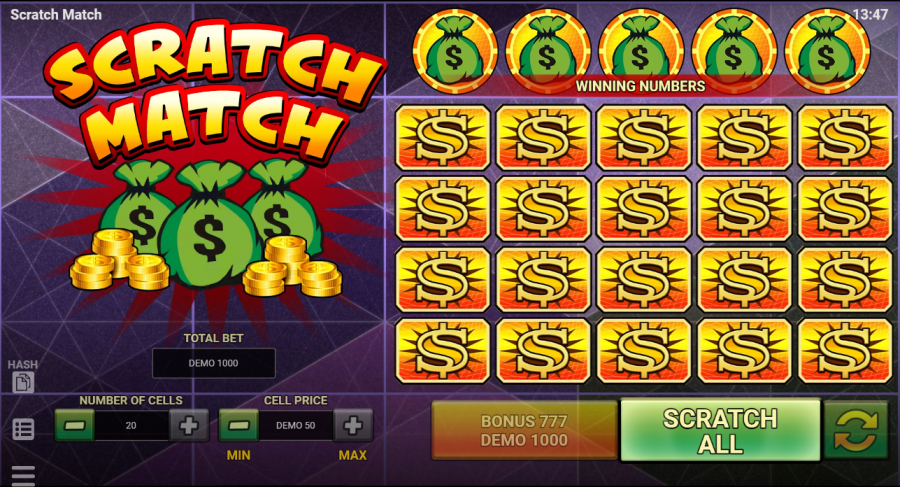 Scratch Match เกมลุ้นโบนัสจากค่าย Evoplay ผู้เล่นจะต้องทำการจับคู่ไอเท็มหรือสัญลักษณ์ที่เหมือนกันกับตัวเลข 5 ตัวเลขด้านบน รูปแบบเกมจะเหมือนกับเกมบิงโกให้ลุ้นรางวัลมากมายตั้งแต่จำนวนน้อยไปถึงมากสุด 50000 บาท โดยสามารถจับคู่ในแนวตั้งหรือแนวนอน และสามารถทำการเชื่อมต่อไอเท็มได้แค่ 4 ด้านเท่านั้น ตัวเกมมีรูปแบบหลากหลายและระดับความยากที่สูงขึ้นเมื่อผู้เล่นเลื่อนขั้นต่อไป เป็นเกมที่มีกราฟิกสีสันสดใสและมีเอฟเฟกต์เสียงที่น่าสนใจ เกมนี้เหมาะสำหรับผู้เล่นทุกวัยที่ชื่นชอบเกมเรียงลอยและต้องการทดลองความสามารถในการเชื่อมต่อไอเท็มเพื่อได้คะแนนสูงสุด สามารถเข้าทดลองเล่นผ่าน Demo Evoplay กับทางเว็บของเรา Richgaming ได้แบบฟรีๆ